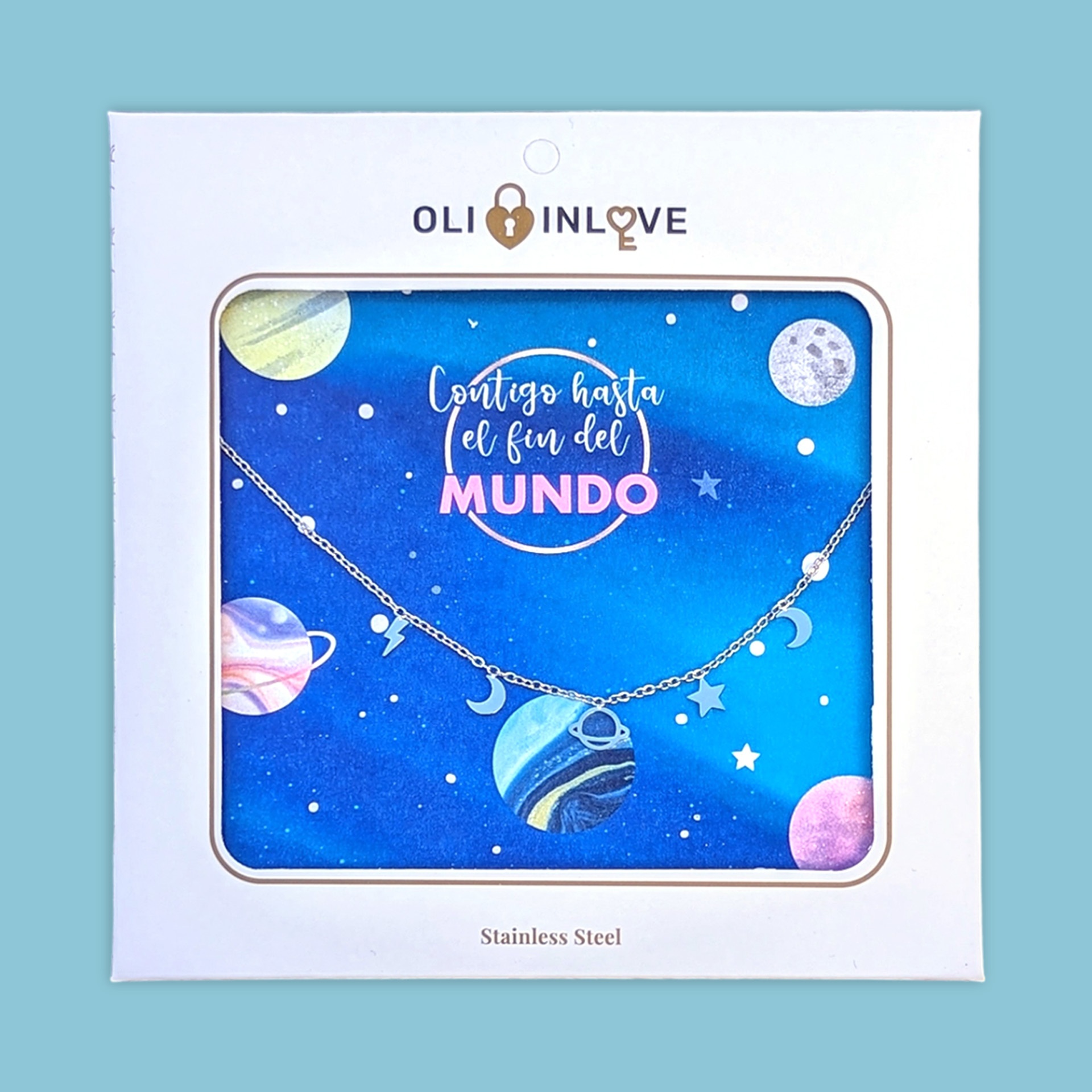 Colgante frase mágica "CONTIGO HASTA EL FIN DEL MUNDO"
