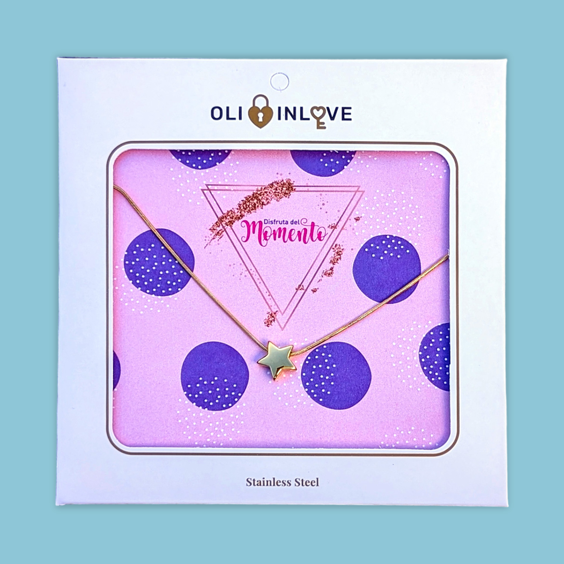 Colgante con cadena de acero inoxidable dorado "DISFRUTA DEL MOMENTO"